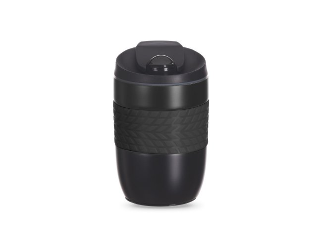 Copo antiqueda em aço inox parede dupla de 260ml, conserva temperatura quente ou fria, pegador em silicone e bico com tampa. Na parte inferior da caneca existe uma ventosa que por sucção previne possiveis quedas causadas por batidas, choques e colisões.