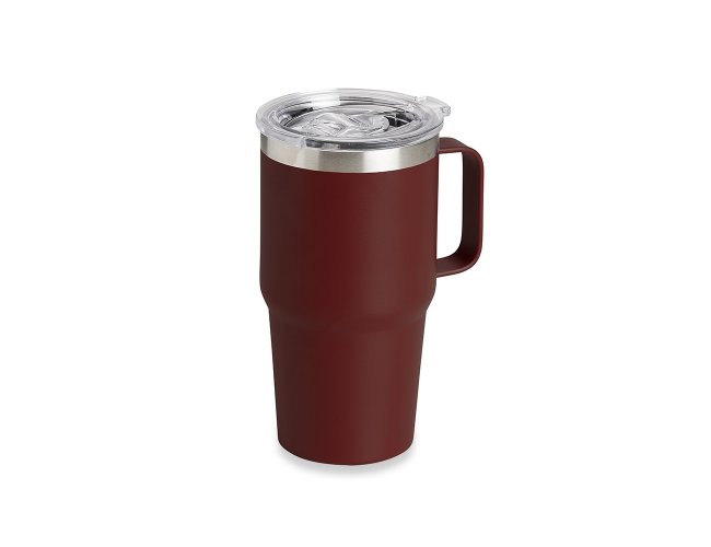 Caneca térmica de Inox com capacidade para 700ml. Acompanha uma tampa de plástico transparente .