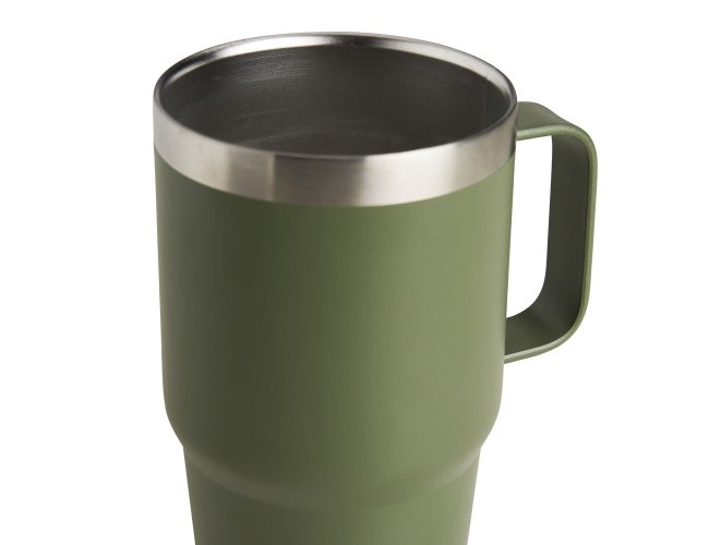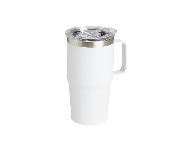 Caneca térmica de Inox com capacidade para 700ml. Acompanha uma tampa de plástico transparente .