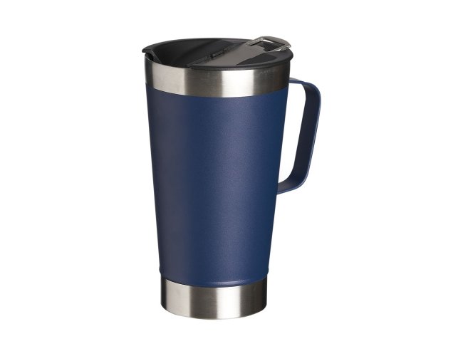 Caneca térmica de inox com capacidade para 500ml. Acompanha uma tampa de plástico e um abridor de garrafas. O abridor fica preso em um encaixe existente na tampa, porém é removível.