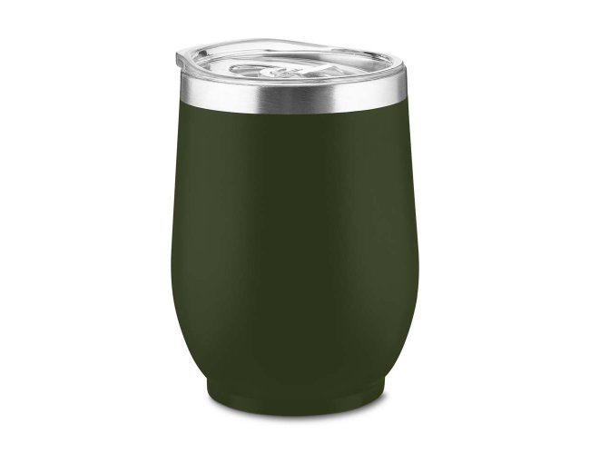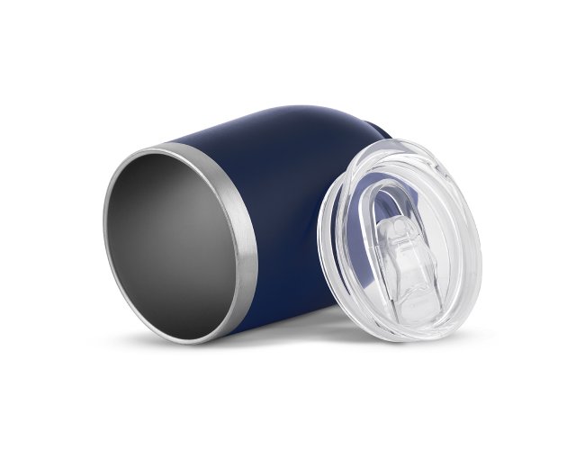 Copo térmico em aço inox com parede dupla, pintura fosca, detalhe em aço inox, tampa plástica com anel de silicone para vedação,abertura na tampa para consumo, capacidade de 350ml.