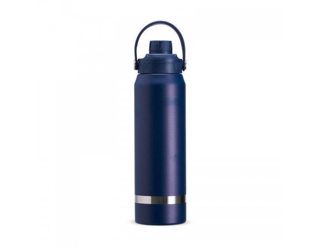 Garrafa térmica em inox 304 com capacidade para até 800ml. Possui estrutura de parede dupla e vedação a vácuo, permitindo a conservação da temperatura de líquidos por mais tempo. Conta ainda com tampa plástica rosqueável com protetor para o bocal, além de alça para transporte.