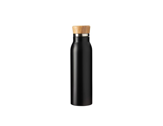 Garrafa térmica feita em inox com pintura em spray, tampa rosqueável em bambu e capacidade máxima de 600ml. Possui estrutura de parede dupla e isolamento a vácuo, permitindo manter a temperatura de líquidos por mais tempo.