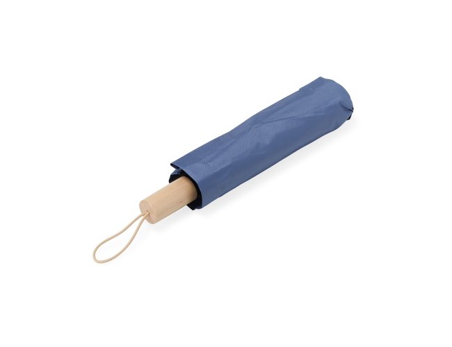 Guarda-chuva manual de nylon com proteção UV, tecido interno em vinil. Com 8 varetas e estrutura em aço, possui botão de abertura e pegador de madeira com alça de nylon. Acompanha capa protetora.
