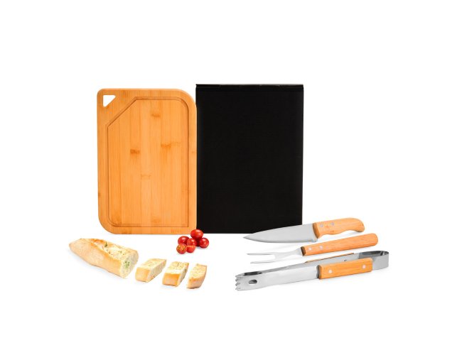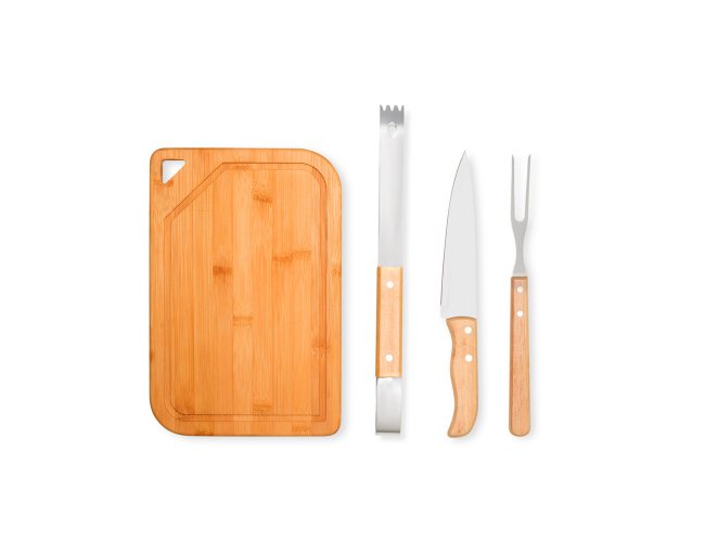 Conj. Para Churrasco Em Bambu / Inox / Madeira - 4 Pçs
