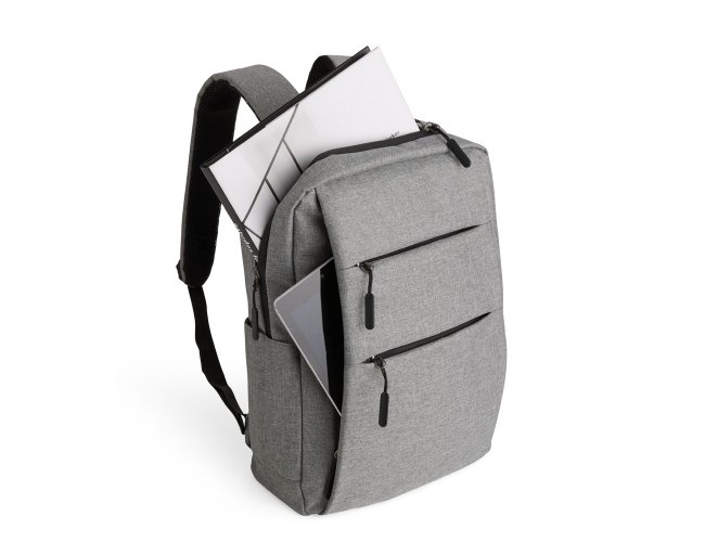 Mochila confeccionada em nylon Oxford impermeável, com fechamento em zíper, puxadores com detalhes em nylon e plástico e capacidade de até 14 litros. Possui compartimento interno principal com bolsos de tamanhos variados e divisória para notebooks de ate 15,6 polegadas. Possui três compartimentos externos, um deles com abertura lateral. Dispõe também de bolso lateral, porta USB, alça de mão em poliéster 210D e alças para as costas em tecido respirável.