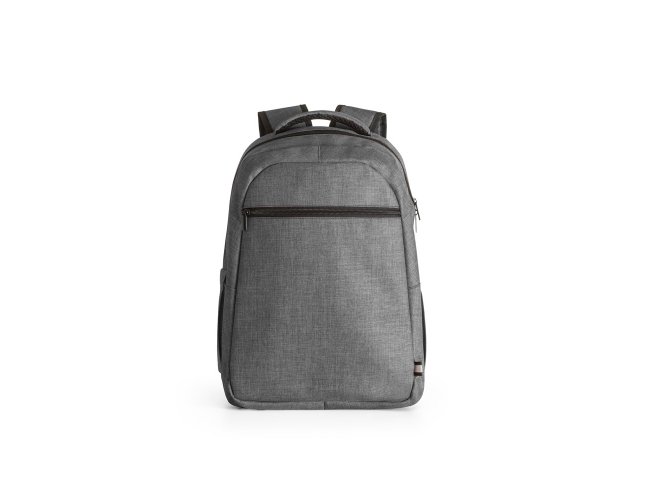 Mochila para notebook em 600D de alta densidade com compartimento principal para notebook até 15". Contém bolsos laterais em tela e um bolso frontal com zíper. Parte posterior e alças almofadadas que incorporam alça para trolley em caso de necessidade.