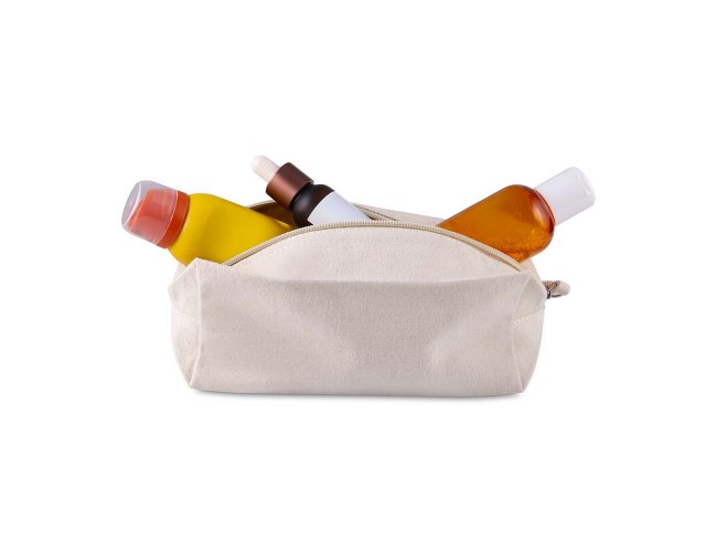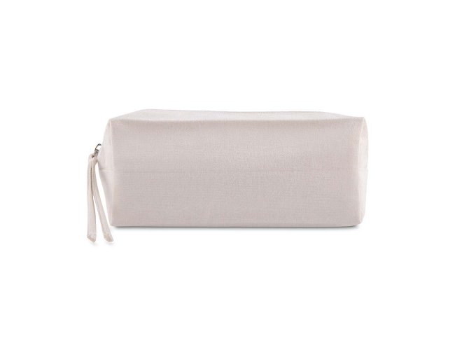Necessaire em algodão reciclado, gramatura 340 g/m², com puxador que traz detalhe em algodão reciclado. Produto resistente e funcional, ideal para organização de objetos pessoais no dia a dia.