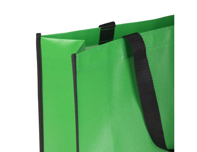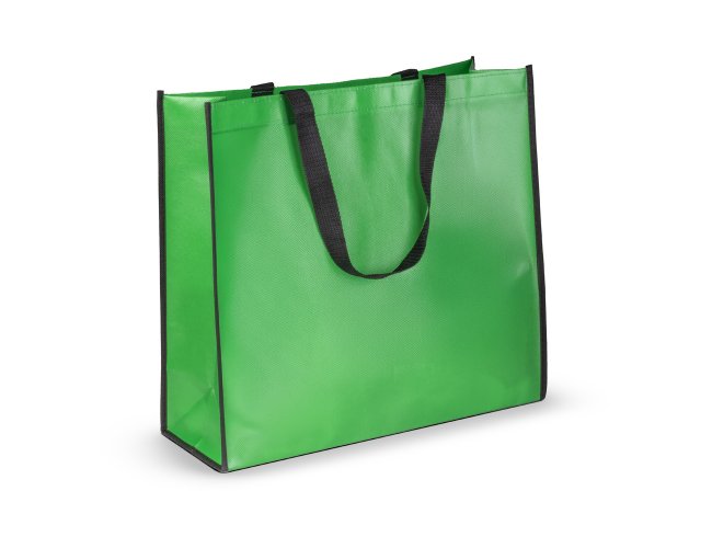 Sacola em TNT com laminação brilhante de 120g/m², possui alça de 47cm de ponta a ponto.
